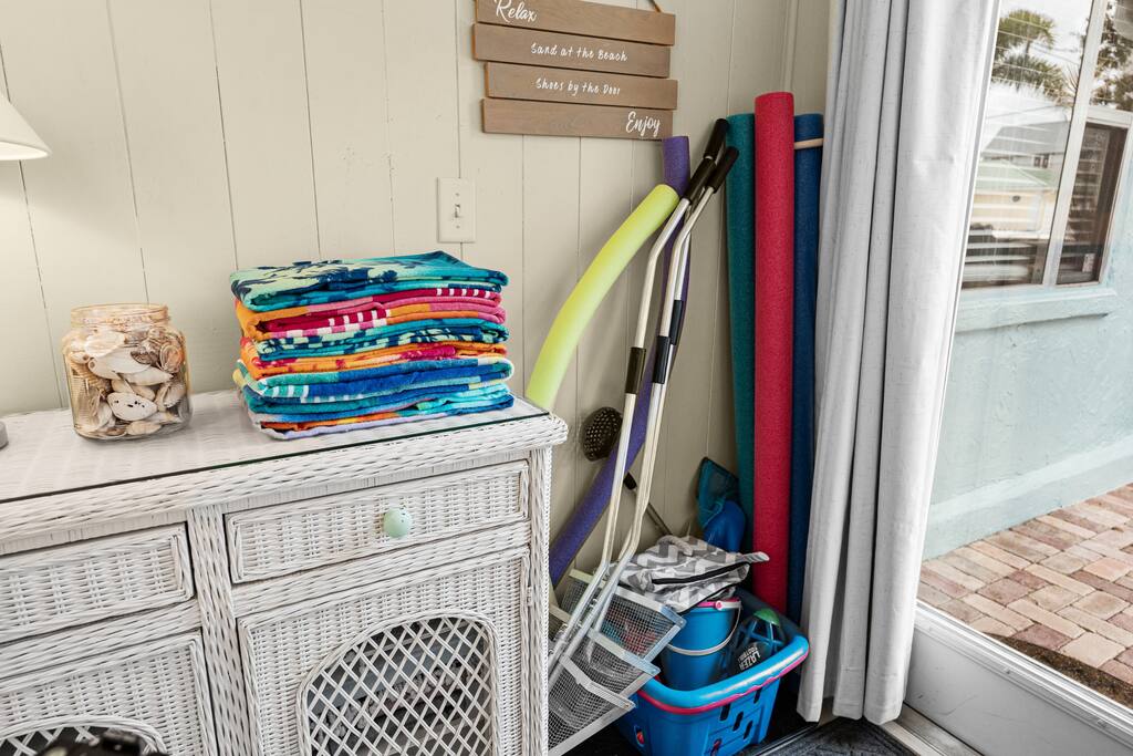 - Beach essentials Beach towels, umbrella, beach blanket, snorkeling gear