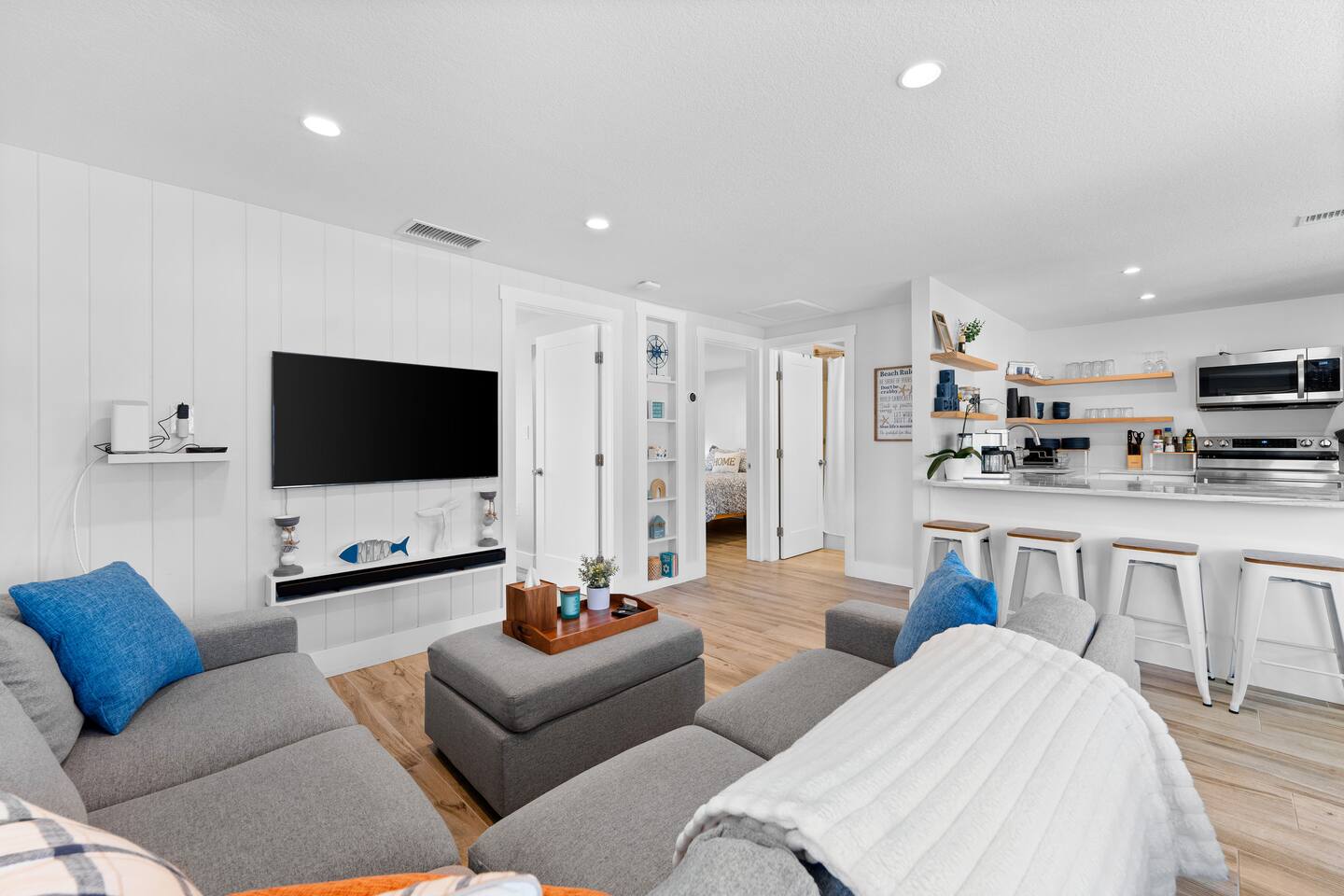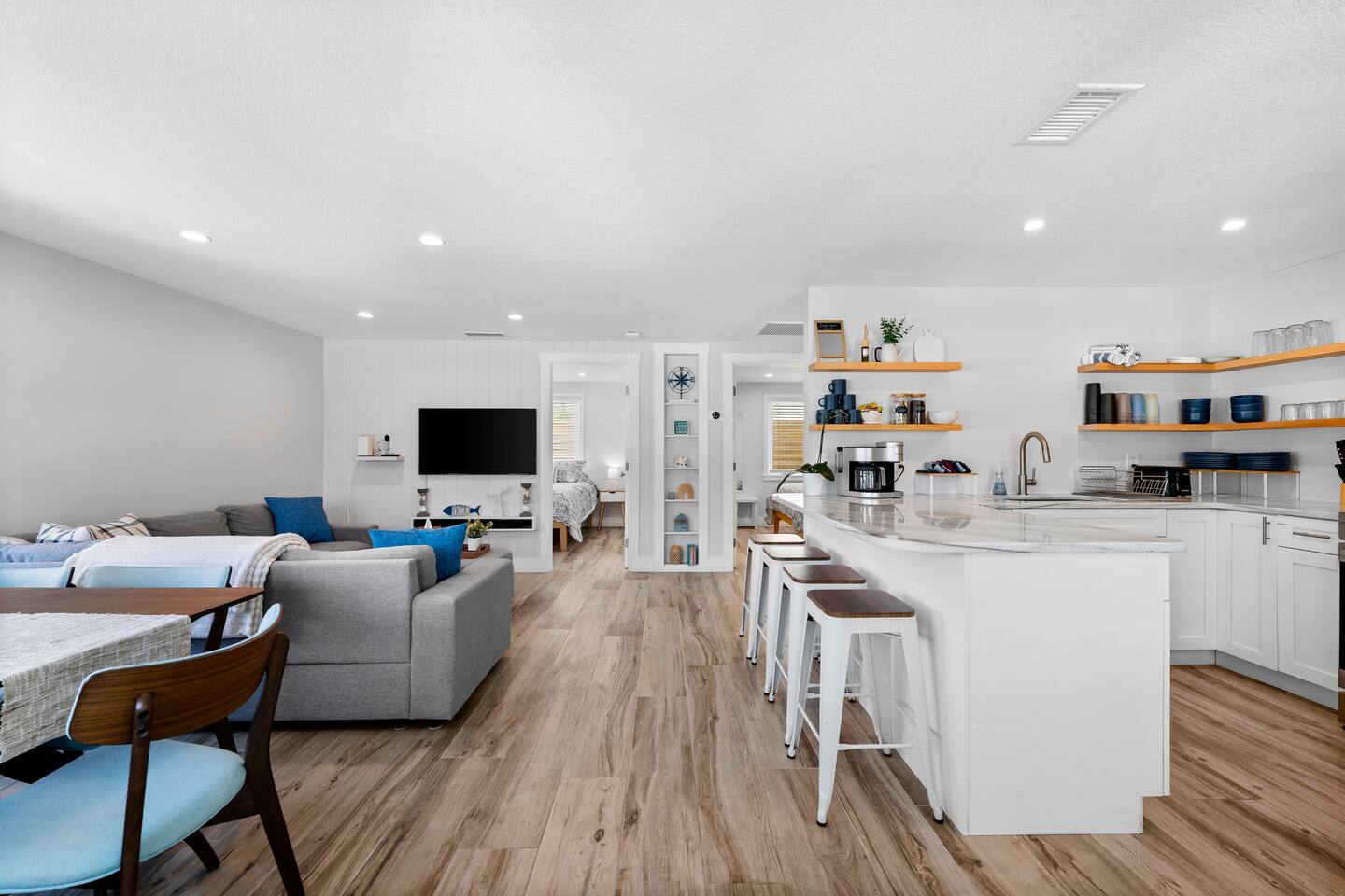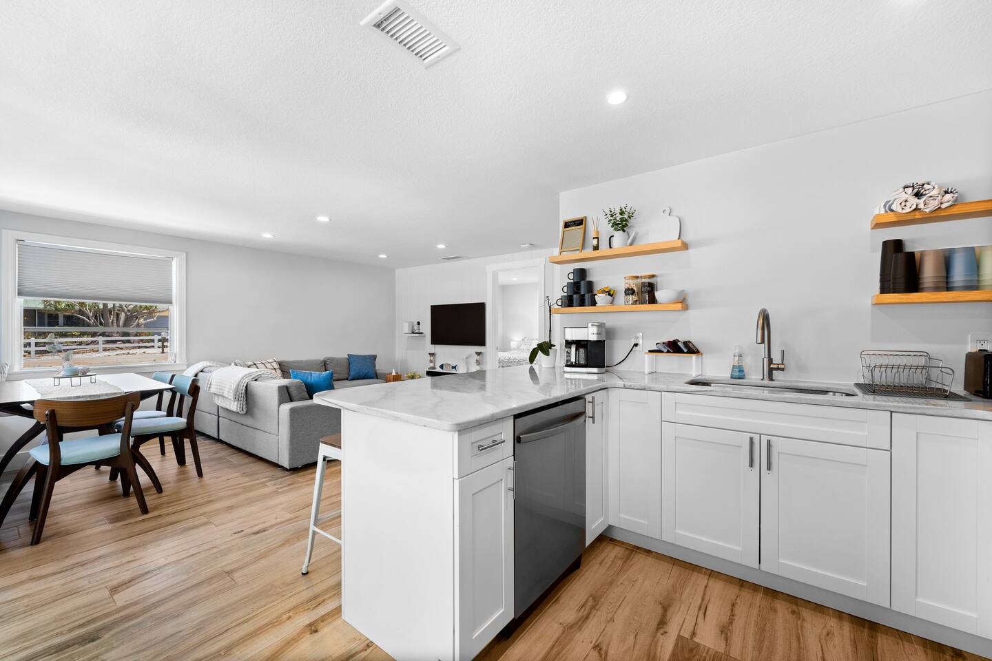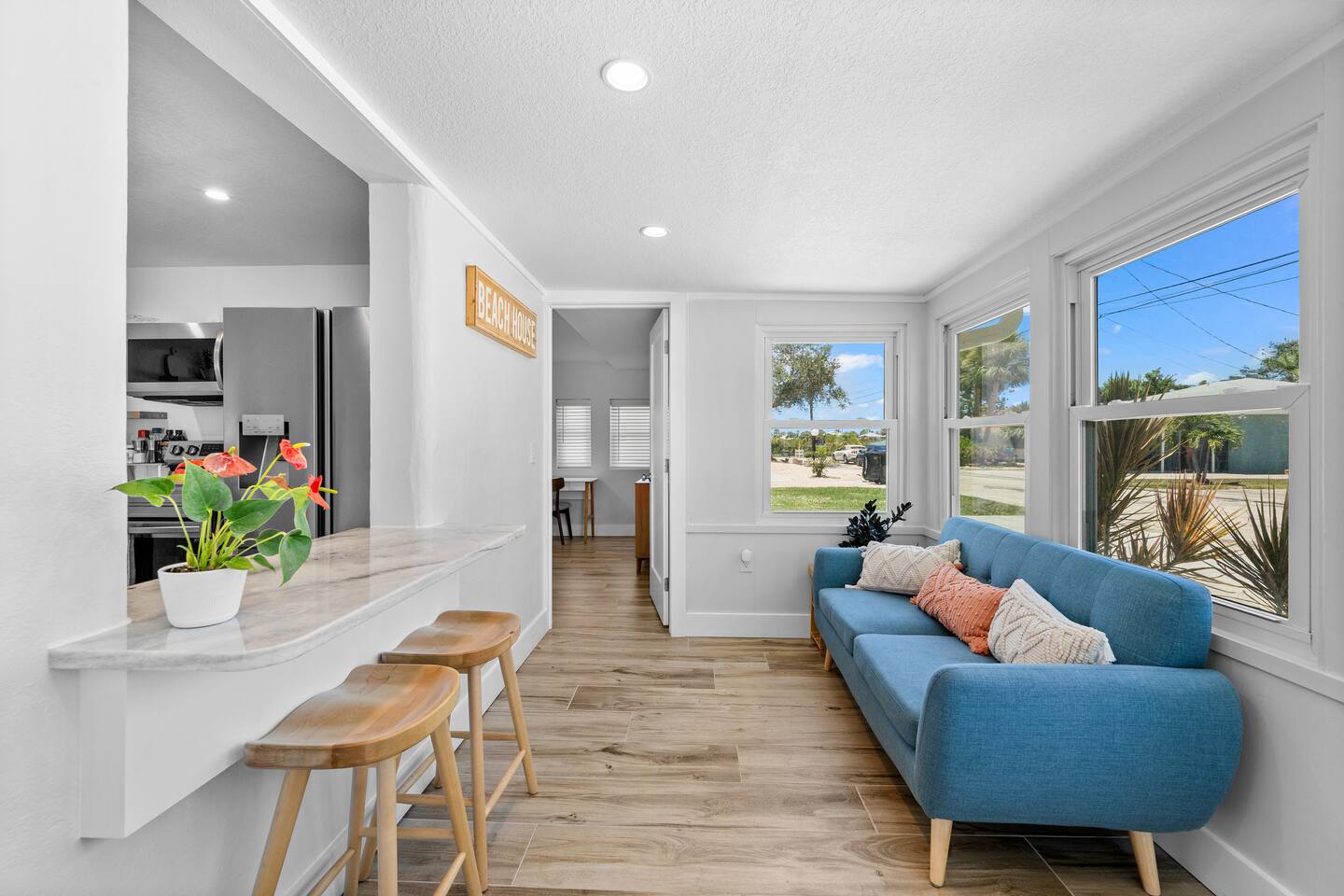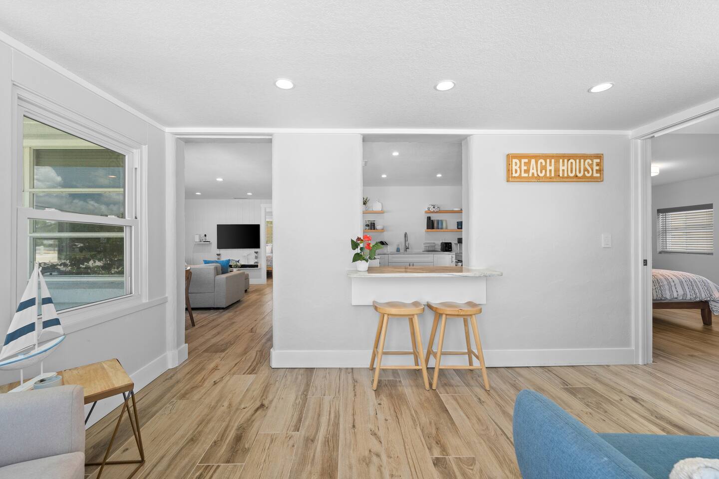 Welcome to your clean, modern beach retreat just 2 blocks from the Gulf. This fully renovated 3BR/2BA home is perfect for families and groups with all new furnishings, mattresses, linens, and appliances. Featuring a private king suite with wet bar & separate entrance, 2 queen bedrooms, and a fully stocked kitchen. Walk to Nokomis beach, waterfront dining, ice cream and local shops. Fast WiFi, smart TVs, coffee bar, washer/dryer, and all beach gear provided for a stress-free coastal escape.
