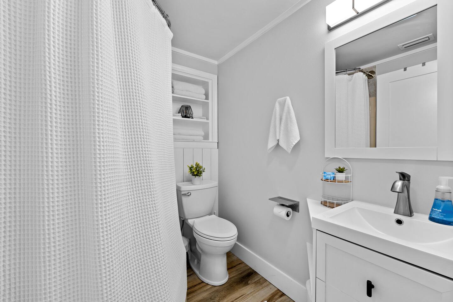 Guests have private access to the entire home with two off-street parking spots, free wifi, streaming services, washer and dryer and a partially fenced yard with an outdoor shower and gas grill.