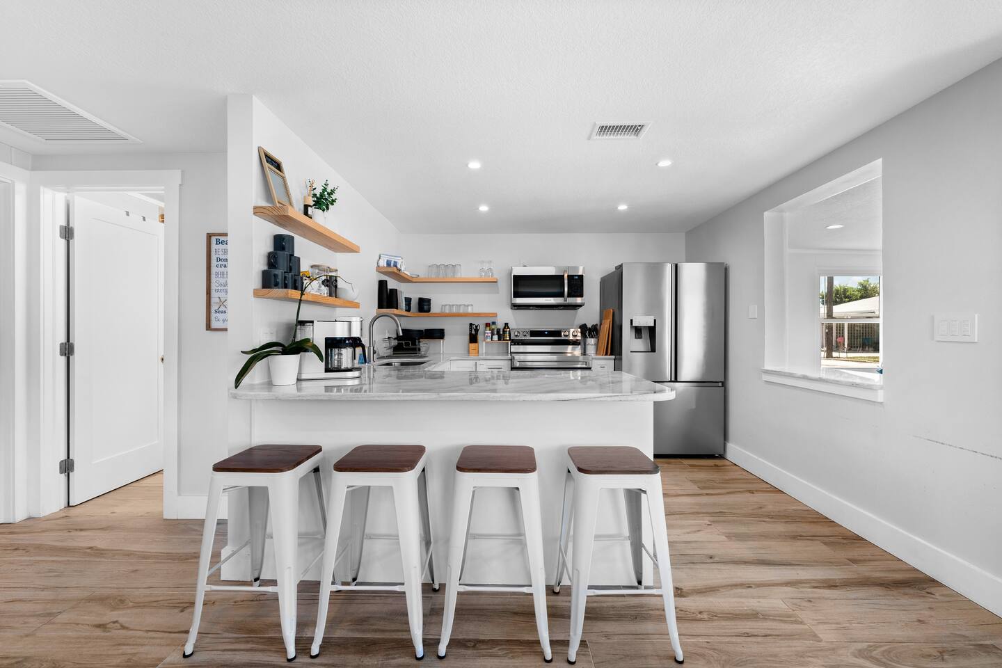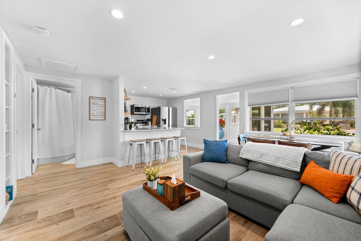 Escape to Poco Paradiso. Perfect for families, couples, or groups. This updated beach home offers everything you need for an exceptional vacation. You cannot beat this location. Key Features * Ideal for families and groups * Professionally cleaned for your comfort * Fresh towels and linens * High Speed Wifi * Modern dimmable lighting throughout * Outside shower * 2 Blocks to beach * 1 Block to waterfront dining Primary King Suite * Spacious suite w/ king bed * Ensuite full bathroom * Wet bar & mini fridge * 4k Smart TV * Private entrance * Desk w/ comfortable chair Bedroom 2 * Queen Bed * Closet Bedroom 3 * Queen Bed * Closet Bathrooms (2) * Stocked with shampoo, conditioner, body wash * Towels, makeup removing wipes, handsoap * Rain shower heads Living Room & Dining Area * Bright open space * 4K Smart TV * Cards, games & books * Comfortable furniture * Dining table for 6 Fully Stocked Kitchen * Dishware, pots, pans, cooking utensils * Salt, pepper, oil, spices * Complimentary coffee, creamer, sugar * Kuerig K cups and drip coffee options * Kids dishware provided * Dishwasher, oven/stove, microwave * Full size fridge with filtered water/ice Beach gear * Beach chairs and umbrellas * Beach towels, cooler, wagon * Beach toys * Shark tooth hunting gear Family-friendly * Kids dinnerware * Pack ’n play * Beach toys * Board games, cards Additional Features * Easy smart lock self check-in * Propane BBQ grill * Outdoor dining table * Off street parking (2 cars) * Washer & dryer - detergent included * Short drive to Venice Pier, Siesta Key, Legacy Trail, golf, and more Overview A clean, modern home with everything you need in an unbeatable location by hosts who truly care.